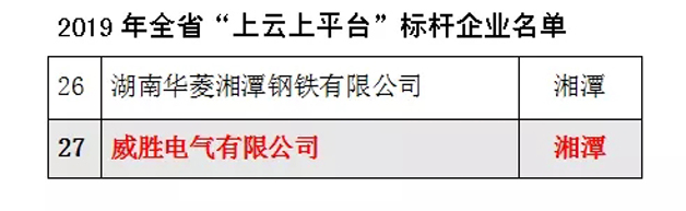 近日,省工信廳對外公布2019年全省“上云上平臺”標桿企業認定名單,全省共有40家企業通過認定,其中,湘潭市僅有兩家企業,威勝電氣榜上有名。