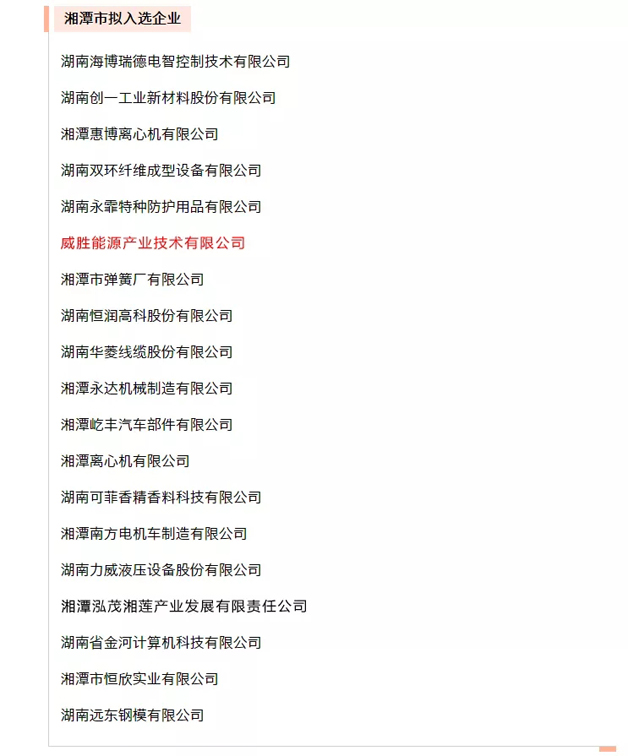11月14日,湖南省工信廳公布了2019年湖南省小巨人企業擬定名單,經企業網絡申報,市州工信局、省財政直管縣工信局審核推薦及專家評審,湘潭19家企業成功入選,惟遠能源產業技術有限公司榜上有名。
