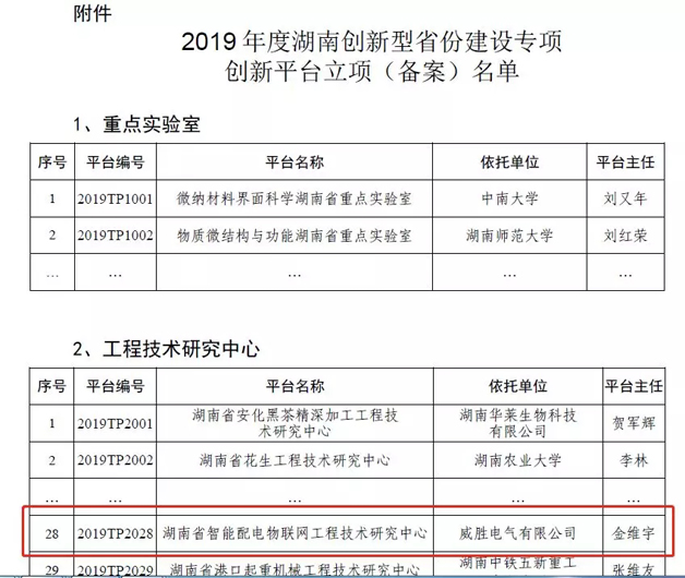 近日,湖南省科學(xué)技術(shù)廳下發(fā)了《關(guān)于2019年度湖南創(chuàng)新型省份建設(shè)專項創(chuàng)新平臺立項(備案)的通知》。威勝電氣憑借“智能配電物聯(lián)網(wǎng)關(guān)鍵技術(shù)研究制造”獲批省級工程技術(shù)研究中心 。這是威勝電氣在獲得湖南省企業(yè)技術(shù)中心后取得的又一重要殊榮。