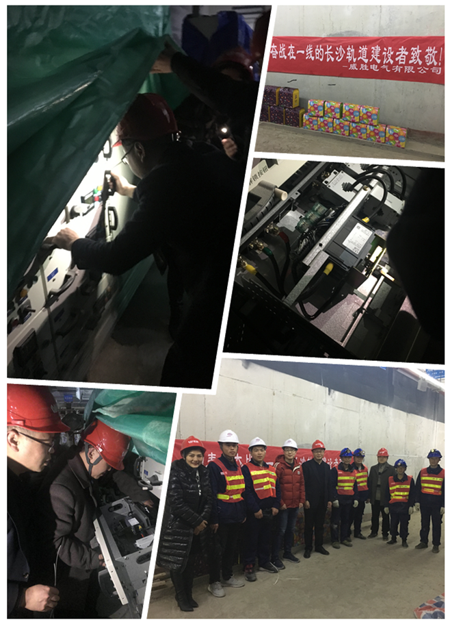 2月21日,陰雨綿綿。當天下午四點,威勝電氣副總裁黃水庚先生帶領我司地鐵項目部總工、售后及商務負責人來到長沙地鐵四號線茶子山站,檢查已交付的400V開關柜設備柜內防潮保護情況,對接下來的梅雨季節設備防護問題作了進一步工作布置,并與供電施工方中鐵十二局同仁進行了現場交流。