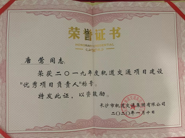 感謝長沙市軌道交通集團對我司的高度認可