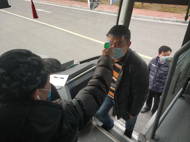 上車前體溫檢測,確保合格佩戴口罩,