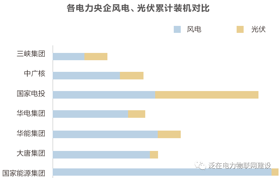 目前看來(lái),盡管中廣核和三峽集團(tuán)的風(fēng)電累計(jì)裝機(jī)數(shù)量仍與五大發(fā)電集團(tuán)存在差距,但是光伏累計(jì)裝機(jī)已超過(guò)除國(guó)家電投外的其他四家發(fā)電集團(tuán)。