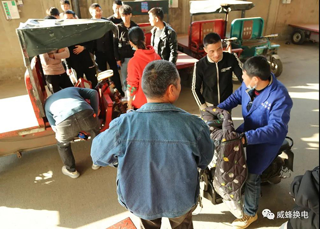 在我們現場改造的同時,周邊的三輪師傅們也紛紛圍觀,據師傅們介紹,場內傳統的充電樁需要繳納兩筆費用,一筆是充電位年費600元,一筆是實際充電電費,算起來一年在充電上面要花費的錢逼近千元,伴隨而來的是巨大的時間成本。由于場內電三輪充電區域緊湊,新老、品質不一的電三輪充電安全隱患問題也成為了他們心病。師傅們親眼看到換電改造如此快捷,了解到換電流程如此簡單后,紛紛表示想嘗鮮咱們的換電新技術!