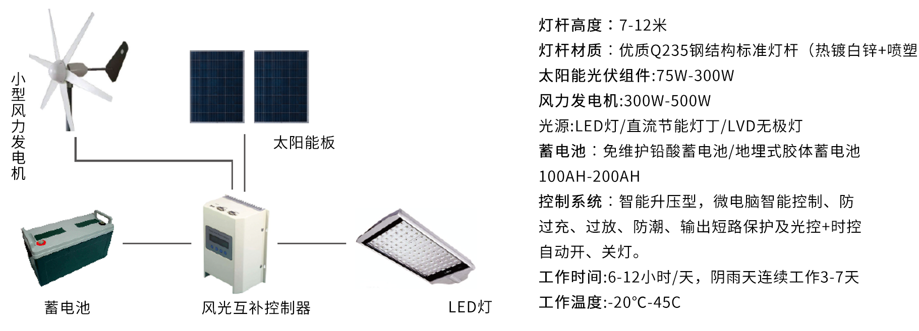 5、控制系統(tǒng):控制系統(tǒng),同時實現(xiàn)光效控制和時間控制,具備過充、過放、過載、欠壓、保護等智能控制功能。此外,低電壓升壓充電系統(tǒng),在風力發(fā)電和太陽能發(fā)電電壓小于24V大于15V的情況下,對這部分電能升壓到24V以上以充分利用。