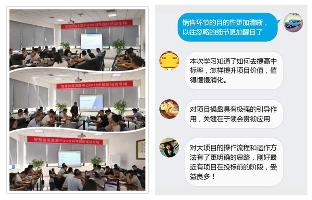 智慧能源發(fā)展中心圍繞團隊業(yè)務能力和風險意識這兩點進行培訓,在新能源業(yè)務實操培訓當中,事業(yè)部總經(jīng)理王興元從實際案例出發(fā),深度解讀操作流程和運作方法,有效提升了團隊業(yè)務能力。