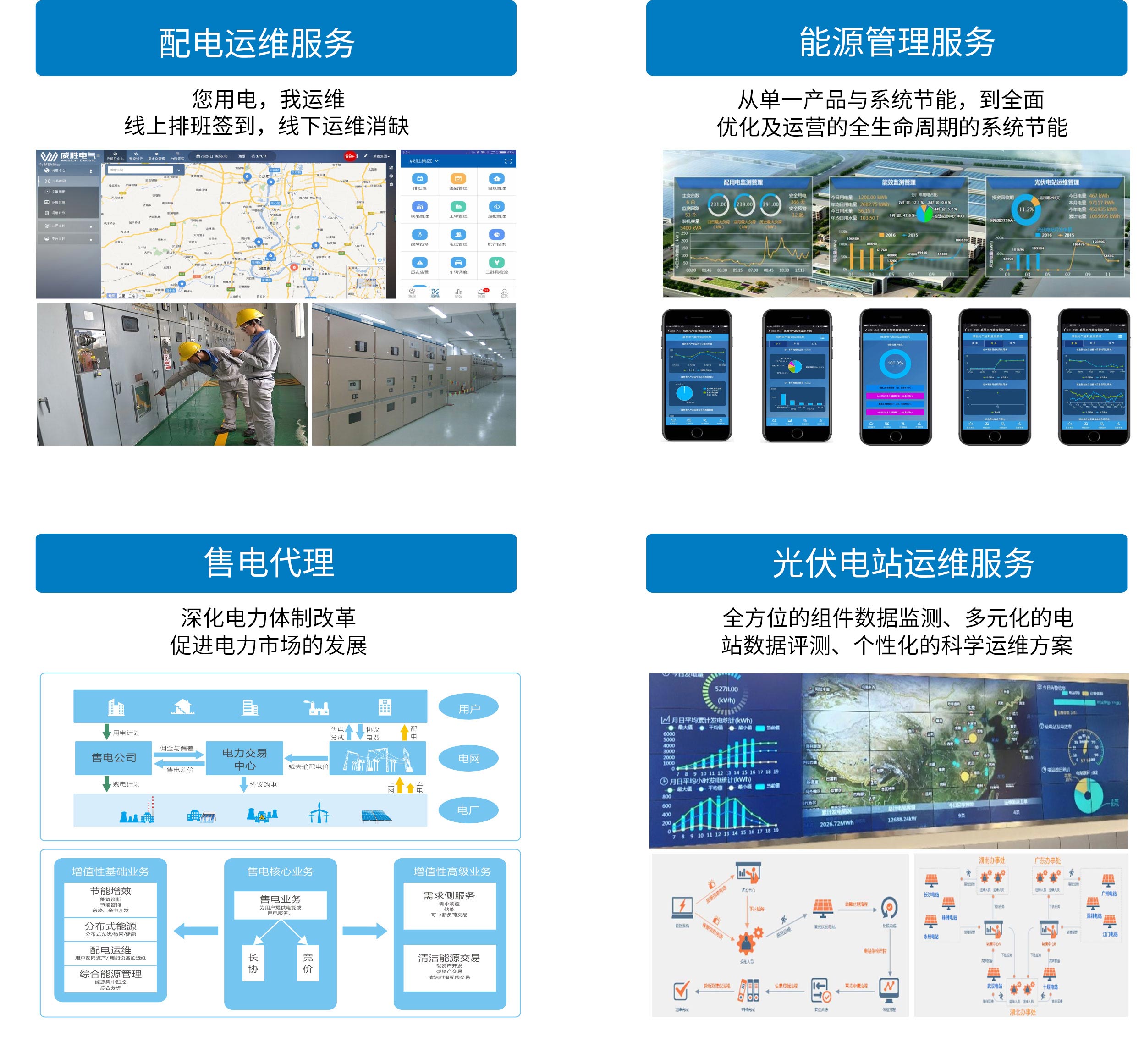 綜合能源服務解決方案是針對智能化配電運維服務及能源(節能)管理、售電代理、光伏電站運維服務等業務提供一站式的智能化能源綜合服務方案。