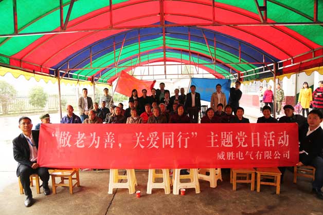 尊老、敬老、愛老一直是中華民族的傳統美德,在一年一度重陽節到來之際,中共威勝電氣有限公司黨總支開展了“敬老為善,關愛同行”的黨主題日活動,由威勝電氣黨總支書記鄧超艷、工會主席劉映專帶隊組織公司十余名黨員及入黨積極分子代表來到湘潭縣分水鄉曉沖村慰問當地困難黨員及敬老院老人。湘潭經開區兩新黨委副書記王忠群、派駐黨建指導員歐陽秀奇一同前往并予以指導。
