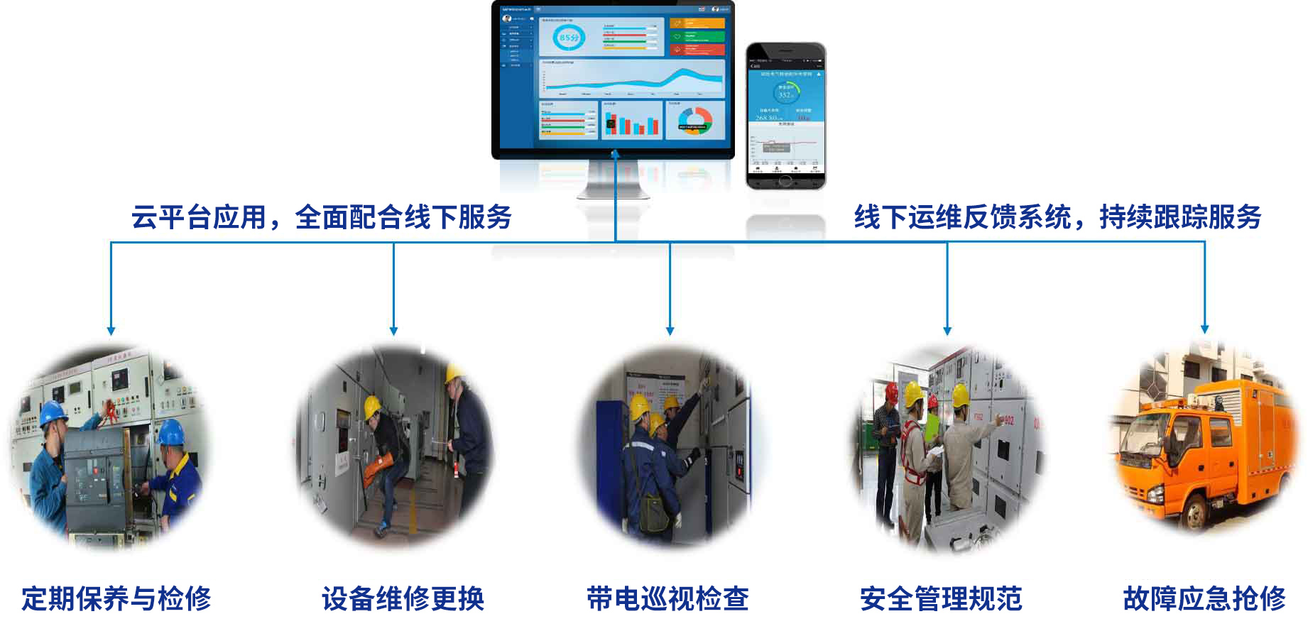 結合大數據的應用,定期針對用戶的配電及能效管理進行總結與分析,并出具相關的智能配電與能效月度、季度、年度分析報告。報告的主要內容為:配電設施與用能的基本概況、能源消費結構與消費特性、主要設備運行分析、用電報裝、相關問題及建議等。